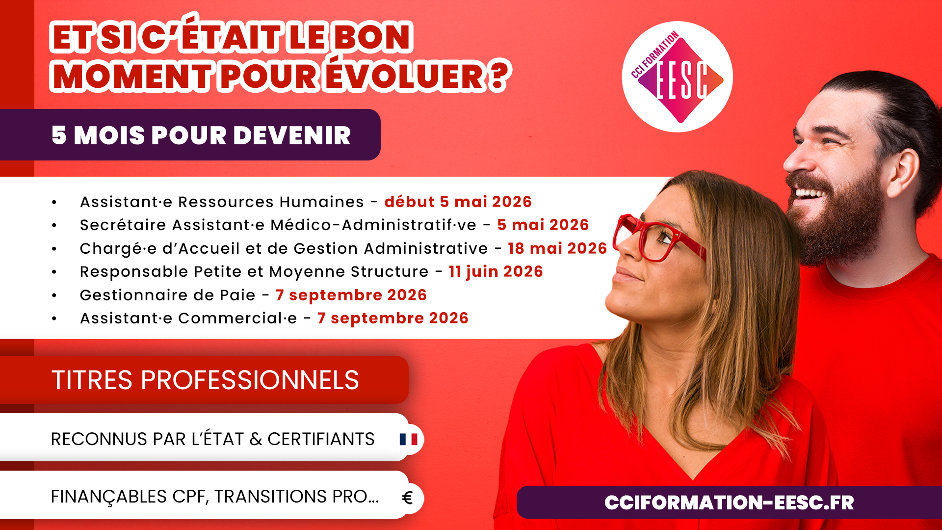 *Nos formations en E-cursus : Assistant·e Ressources Humaines, Secrétaire Assistant·e Medico Associatif·ve, Gestionnaire de Paie, Assistant·e Commercial·e.